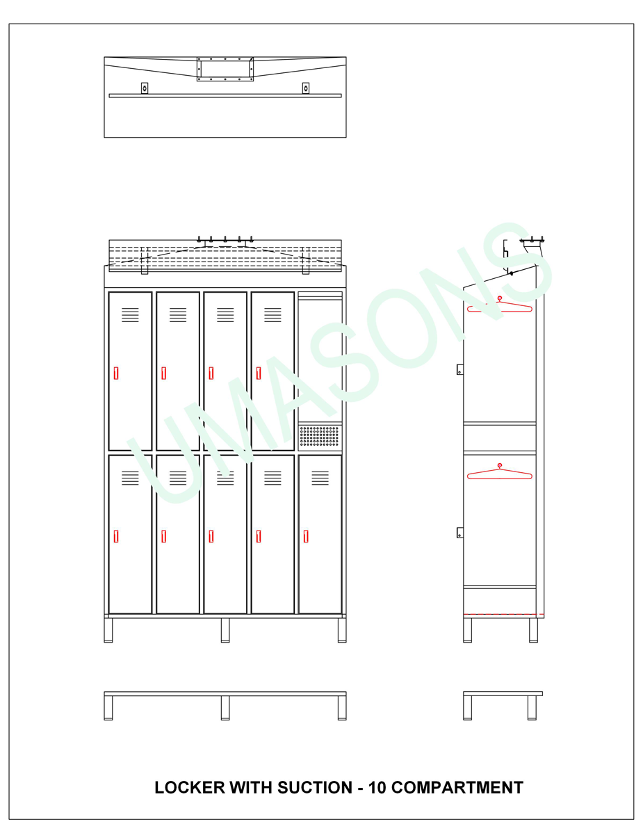 We manufacture shoe racks in different sizes and combinations. These shoe racks are fitted with doors and have built-in suction to remove false odour. Such ventilation means help keep your change room areas clean and fresh.